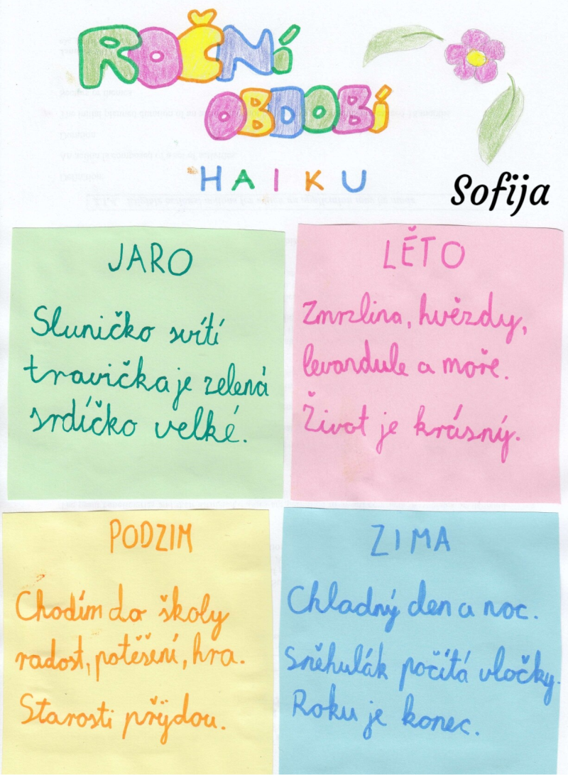 ROČNÍ OBDOBÍ, KTERÉ MÁM RÁDA JSOU LÉTO A ZIMA. MILUJI MOŘE, PROTOŽE SE MOHOU VYKOUPAT A HRAJU SI S PŘÁTELI NA PÍSKU. ZIMU MILUJI KVŮLI SAŇKOVÁNÍ A SNĚŽENÍ.